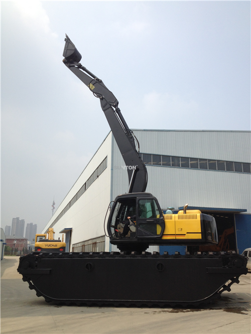 • 可在水深1米以內的河道與海灘中作業。超過1米水深的作業環境,可根據客戶要求進行特別設計及制造。產品對特種作業環境的適應能力,其他類型的挖掘機無法替代,被海內外客戶譽為“水中挖掘之王”。