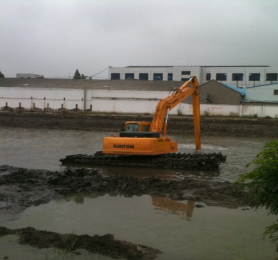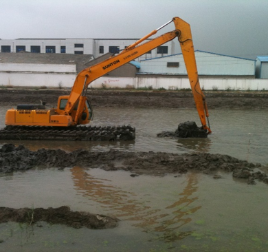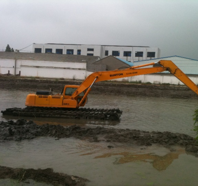 • 可在水深1米以內的河道與海灘中作業。超過1米水深的作業環境,可根據客戶要求進行特別設計及制造。產品對特種作業環境的適應能力,其他類型的挖掘機無法替代,被海內外客戶譽為“水中挖掘之王”。