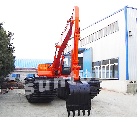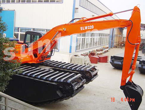 SLW系列清淤(濕地式、水陸兩棲式)挖掘機是一種同時適用于軟土陸地、沼澤濕地及淺水等各種作業環境的多用途挖掘機。從水域治理、環境整治、城鎮建設中河道的清淤、海灘的圍堰加固到魚塘的開挖等等,可解決許多特定環境下的工程難題;在農田水利基本建設方面,所發揮的作用也是顯著而獨特的。 產品融匯了公司研發技術精英團隊多年的心血,多項國家級技術專利成果保證了產品豐富的技術含量和產品性能的獨特性。 產品歷經了多年工程應用實踐的考驗,各種工況的大量實踐結果佐證,產品技術性能與可靠性完全值得廣大海內外客戶信賴和鐘愛。