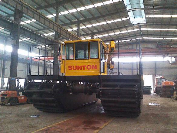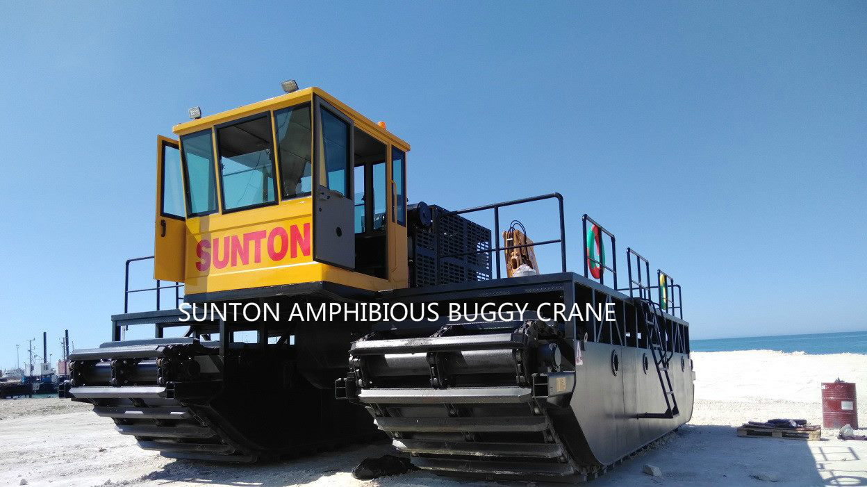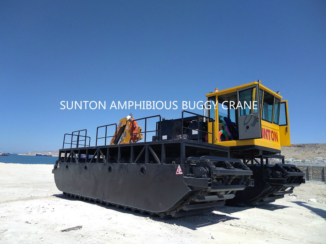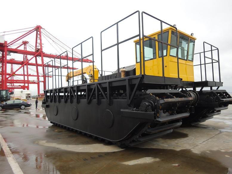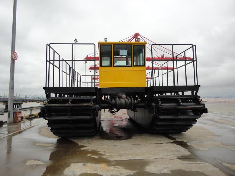 SLC35 水陸兩用運輸船的行走裝置采用雙體船式浮箱結(jié)構(gòu)履帶架及密封的箱形履帶板,超低接地比壓,能在松軟泥濘的濕地、灘涂、沼澤地帶及泥沼中作業(yè)和行駛,也可以水上浮航,保證能在水上安全游弋。 水陸兩用運輸船是屬于交通運輸、漁業(yè)作業(yè)的綜合機具,克服了目前汽車、拖拉機僅能在陸地作業(yè),船僅能在水上作業(yè)的弊端。該船結(jié)構(gòu)簡單,造價經(jīng)濟,品質(zhì)優(yōu)良。